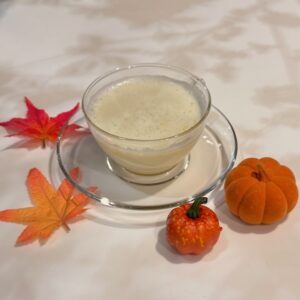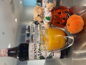 季節のドリンク・お茶菓子お酒じゃないですよ‼😂見た目がハロウィンなドリンクと🍊👻