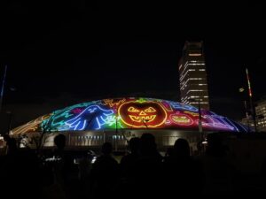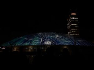 アリーナの屋根に映し出されるプロジェクションマッピングも見てきましたよ😇