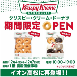 イオンモール高松にクリスピークリームドーナッツが期間限定で出店されるそうです![]()