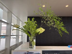 全体が緑でまとまった、5月先取りのような生けこみ🌿
